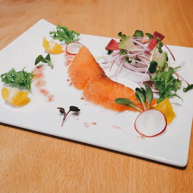 【春の新メニュー】ノルウェーサーモンの燻製 桜ノ花のビネグレット