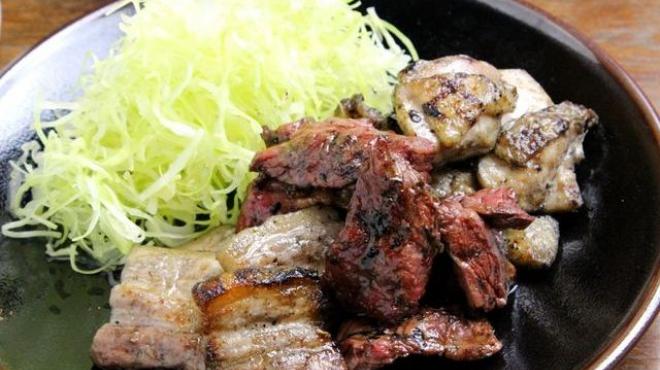 ③「刺さない焼鳥」名物!炭火鉄板(鶏・豚)